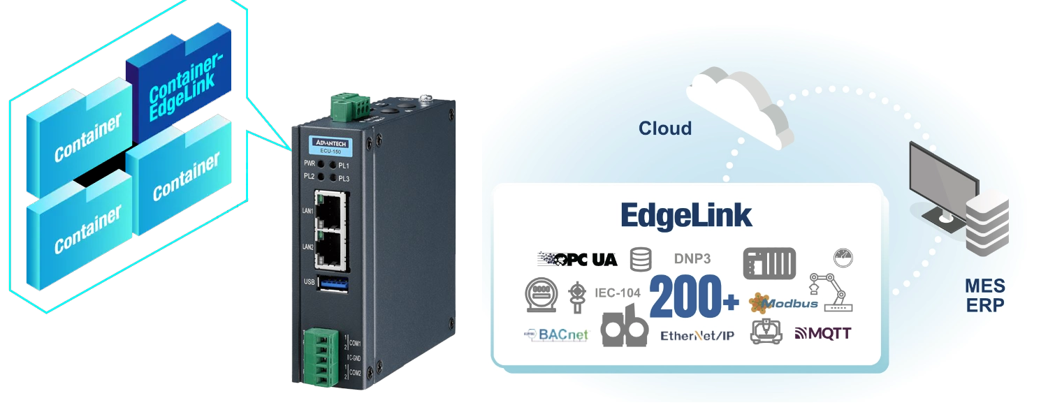 Dette gjør at ECU-150-12A1 enda mer fleksibel. EdgeLink kan samhandle med andre docker programmer eller 3 parts software.