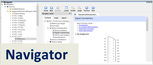 Navigator er et komplett og brukervennlig verktøy som tilbyr maskinvarereferanser, enhetskonfigurasjon, kalibrering, testfunksjoner og programmeringsreferanser gjennom hele utviklingssyklusen. Dette gjør det enklere å sette opp, validere og optimalisere DAQ‑systemer på en effektiv måte.