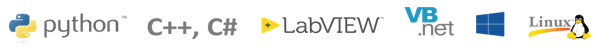 • Støtter Python, C++, C#, LabVIEW og VB.NET.