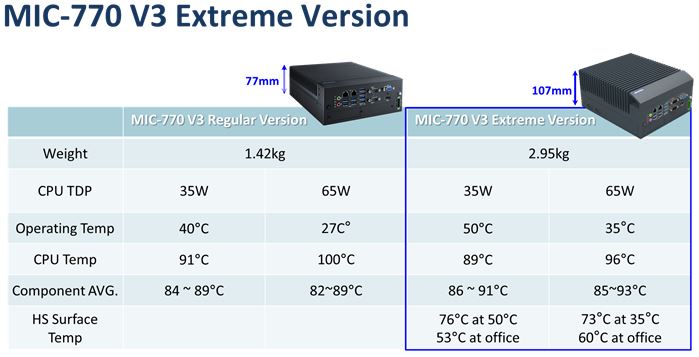 Du kan få MIC-770 V3 i Exstreme versjon der kjøle-ribbene er 30mm høyere og der er ca 1,5 kg mer aluminium i kjølekappen.