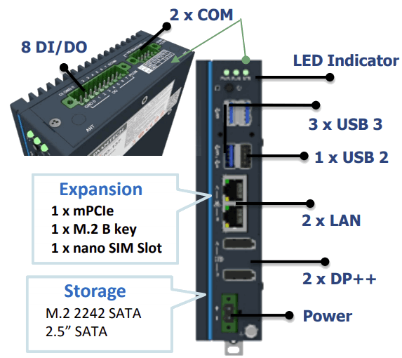 UNO-137-V2 er en oppdatering med nyere Intel® Atom® x6413E (1,5 GHz) og x6425RE (1,9 GHz) prosessor og med 8 GB DDR4-minne.